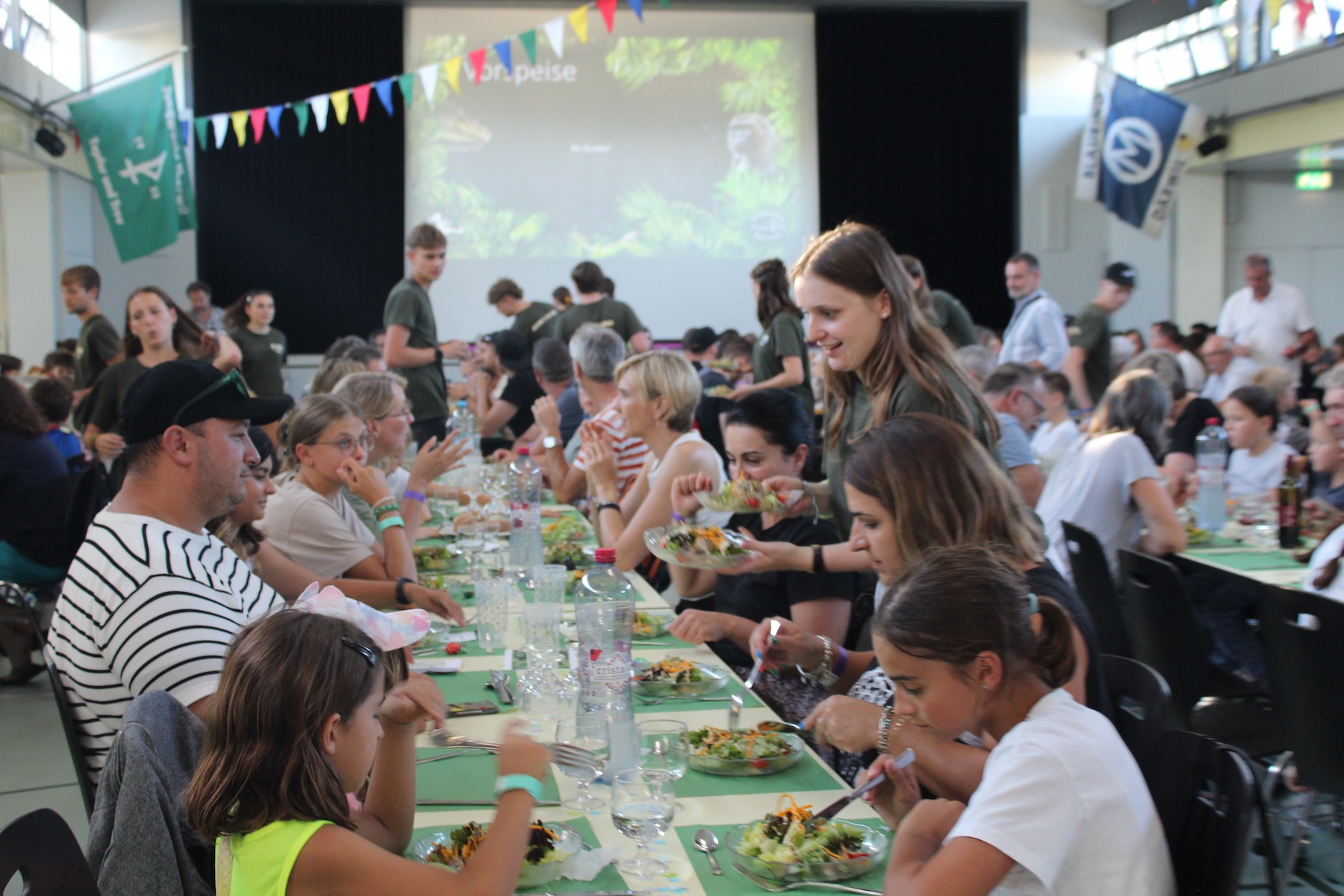 Am Abend ging es dann in der Mehrzweckhalle weiter, wir schauten unsere Lagerfilme, die Gruppe Litonyas führte eine Playbackshow auf und es gab ein feines 3-Gang-Menü von wahlievents. Am späteren Abend ging es weiter mit der Party und die Ehemaligen betrieben eine Bar mit feinen Drinks.