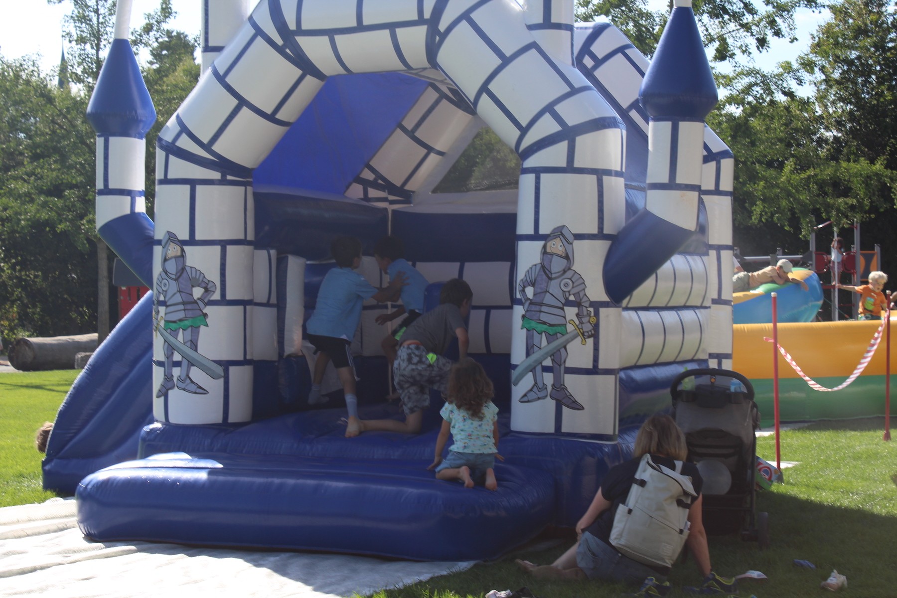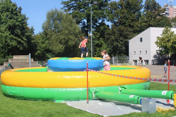 Durch den Tag gab es ein vielseitiges Angebot: Hüpfburgen, Basteln, Labyrinth erkunden, Dschungelroom erforschen, Stühle bemalen, Kinderschminken, verschiedene Spiele und Spielgeräte, feiner Burgerstand der Ehemaligen, Archivstand der Ehemaligen, Kuchenstand, Fotoautomat und unser Infostand
