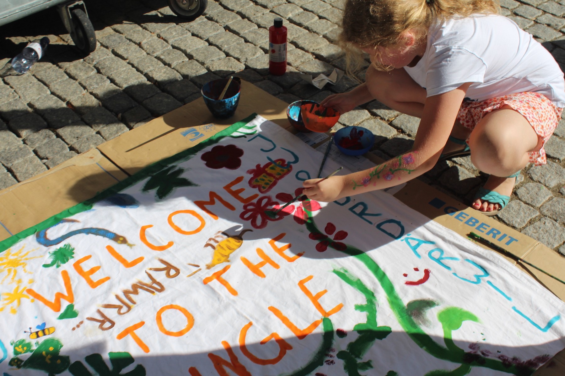 Durch den Tag gab es ein vielseitiges Angebot: Hüpfburgen, Basteln, Labyrinth erkunden, Dschungelroom erforschen, Stühle bemalen, Kinderschminken, verschiedene Spiele und Spielgeräte, feiner Burgerstand der Ehemaligen, Archivstand der Ehemaligen, Kuchenstand, Fotoautomat und unser Infostand